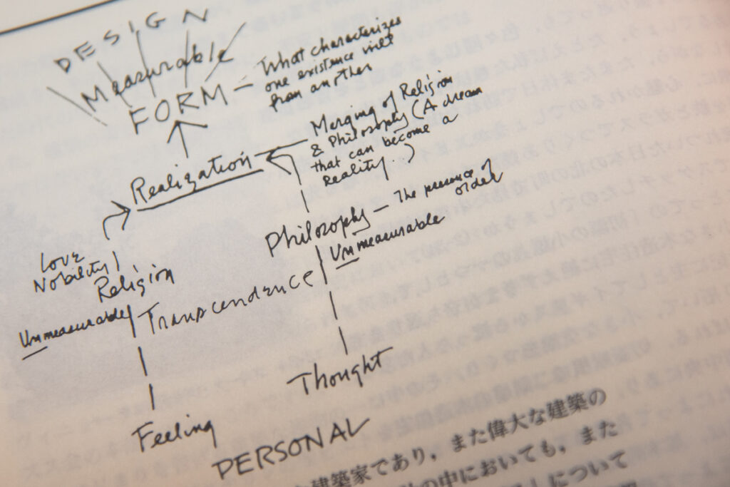 「逆らわない」ことで生まれる秩序は、カーンの生み出した建築に通底するポイントではないでしょうか。デザインや設計において、恣意性を極力排除する感覚、もしくは恣意的なものとそうでないものとのバランスを上手くとる感覚は重要になことのように思われます。