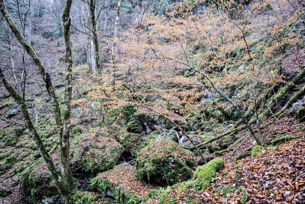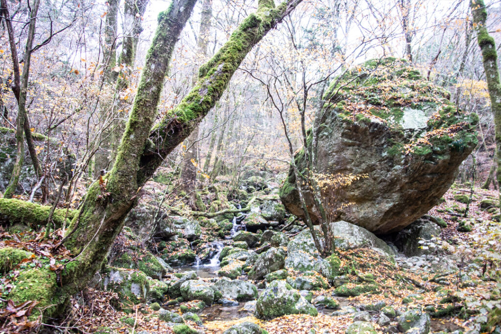 紅葉が少し終わりかけているタイミングでしたが、小雨が生み出す濃い緑や渓流などによって、素敵な景色を見ることができました。
