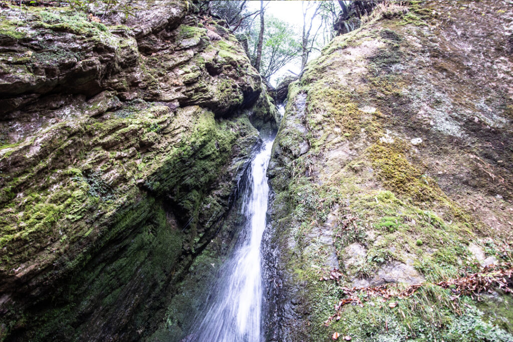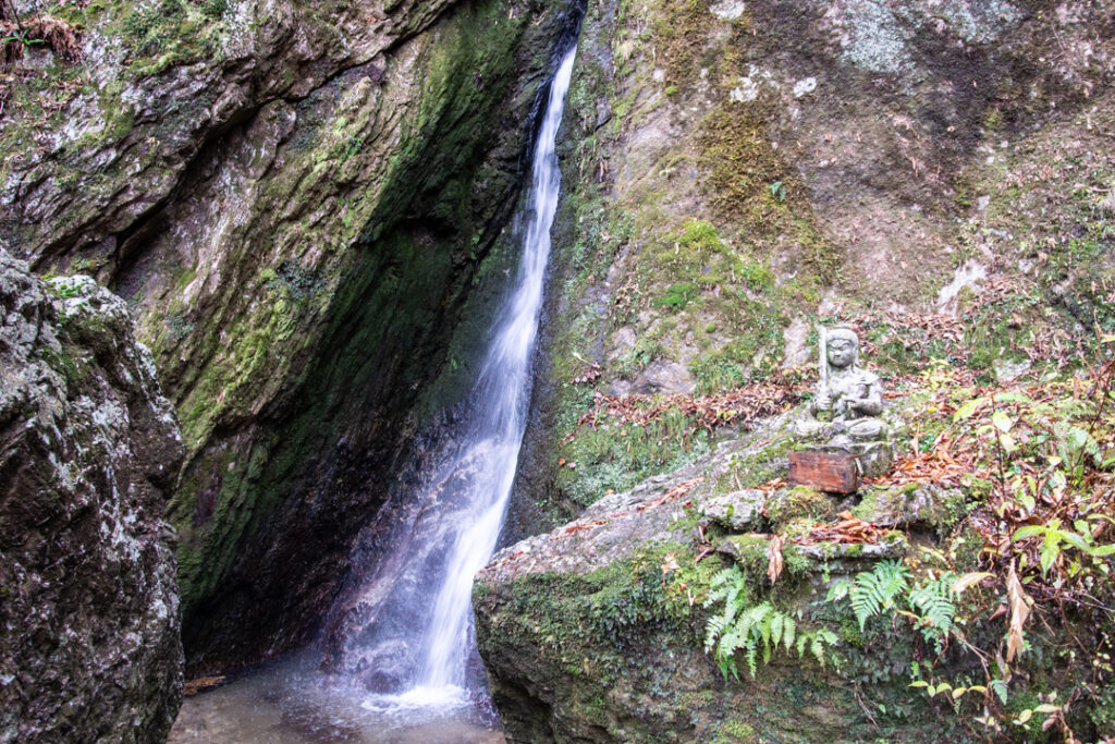 駐車場の奥に登山口があり、龍王の滝は歩き始めて500mで到着します。